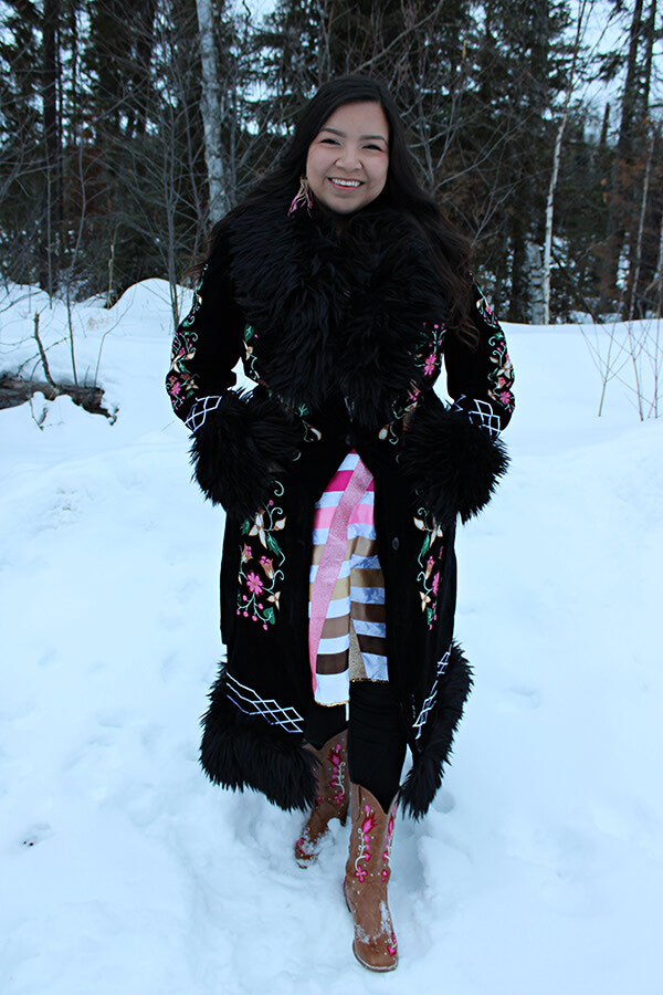 Commenting on her design, she said she reflected on the animals in her territory, specifically the black bear. “I drove inspiration from the land we live on, honoring mother earth and her gifts of food - blueberries.”