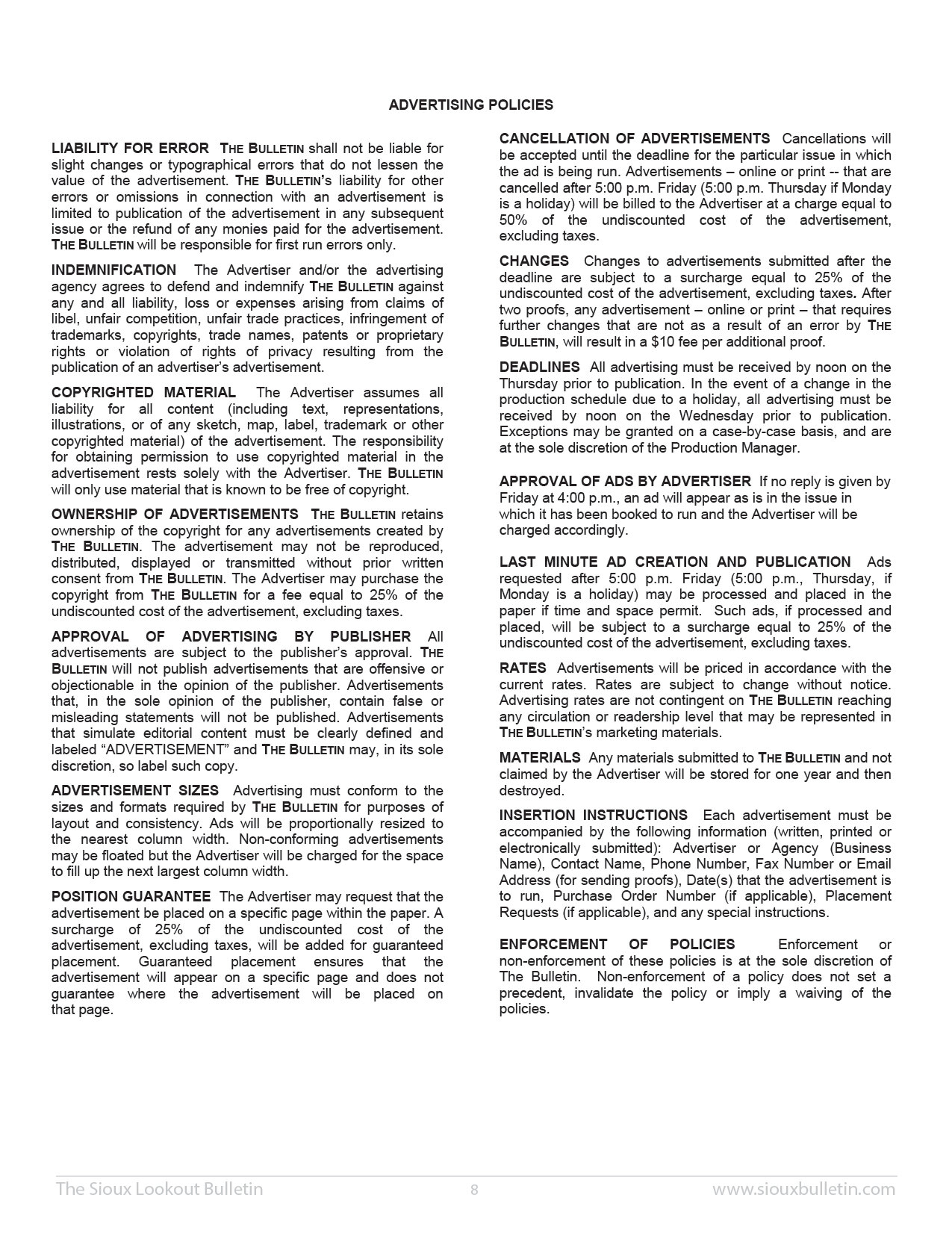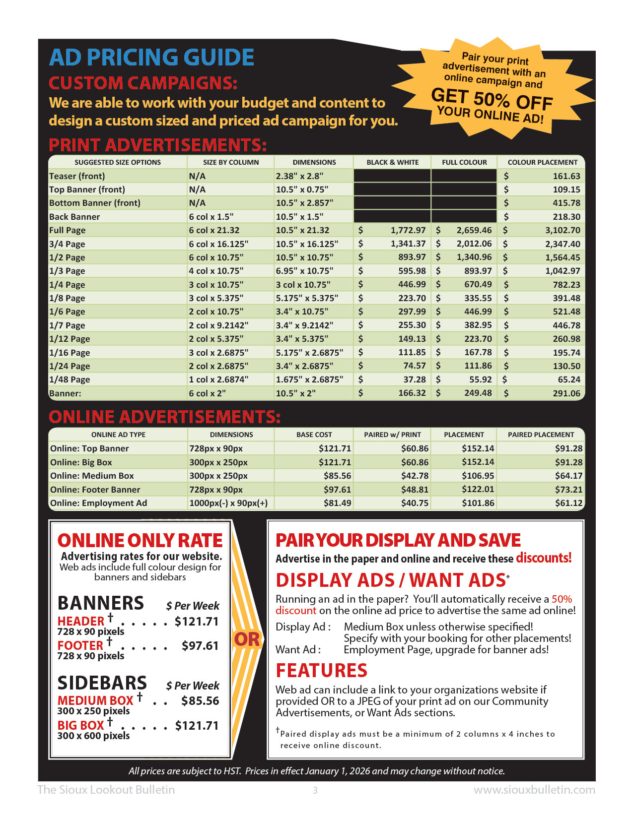 Advertising Rate Package