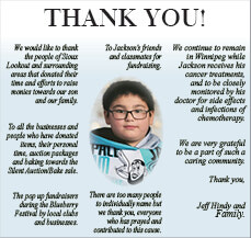 We would like to thank the people of Sioux Lookout and surrounding areas that donated their time and efforts to raise monies towards our son and our family...