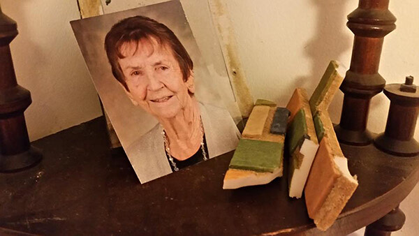 “Your mother just jumped off the shelf and shattered her frame,” sister-in-law Marge announced from the doorway.
