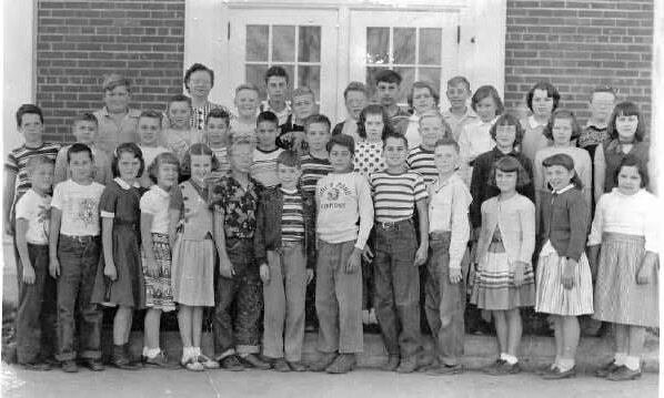 Andy is the guy in the back row of the group photo, between the doors, wearing glasses. I’m fifth from the left in the second row. We were fifth grade classmates in 1954, in Danville, Vermont.