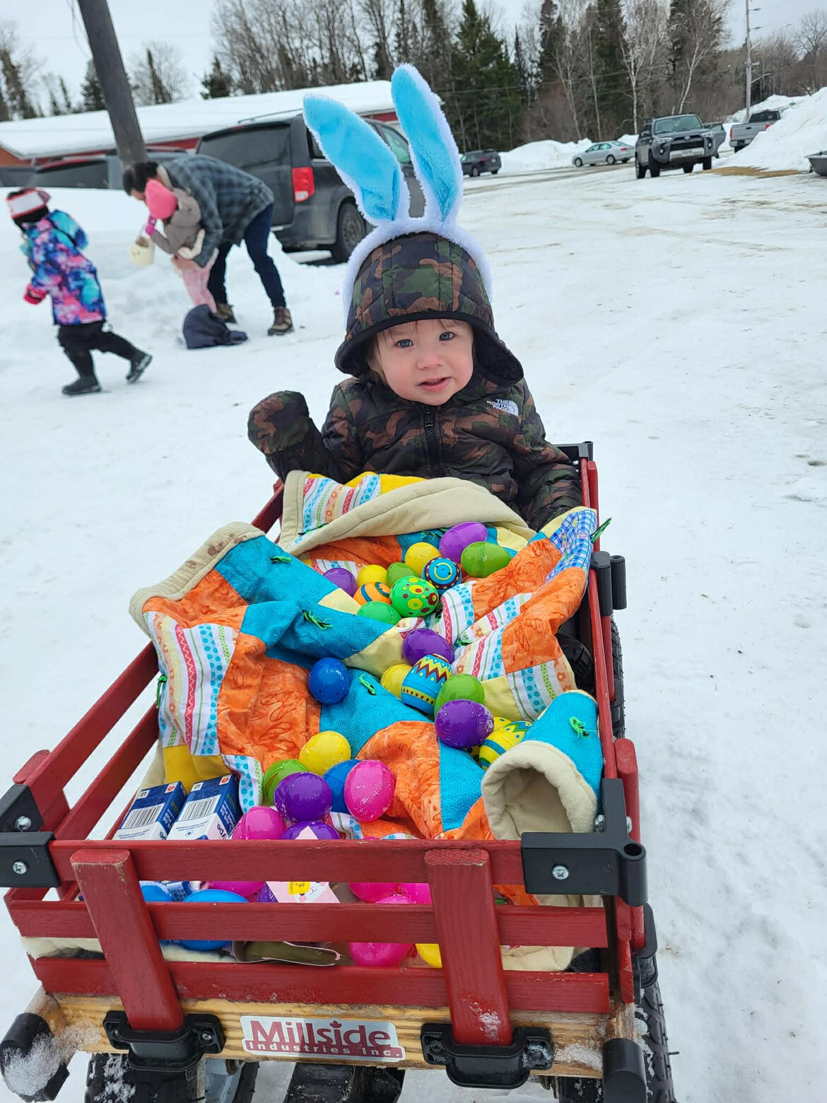 Scott shared, “I would like to take a moment to thank all the wonderful supporters who came out and helped make this such an amazing event here in Hudson. Thank you to: Hudson DropIn Centre for donating the baskets and bunny ears, Town of Sioux Lookout Recreation Department for the use of the outdoor rink, Hudson Individuals: Kathy S, Krista S, Leanne T, Kennedy R, Dorothy B, Robert P, Amanda P, Noah P, Patricia R, Susan G – Sister Sue Bakery & partner Lisa M, Sheila B, and family and my wife, Ashley C.
