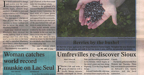 It has continued to change and evolve over the years, has seen its highs and lows, mostly highs, attracts large numbers of people to town and seems to have a way of bringing out the best in people. Yes, once again it’s that special time of year that blue reigns supreme in Sioux Lookout and fun is never far away, the Blueberry Festival.