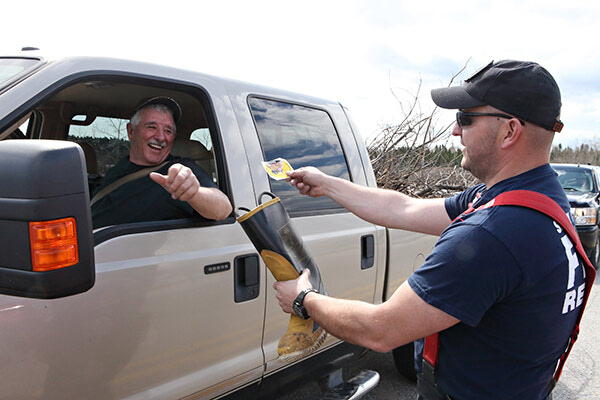 Firefighters collected donations on May 14 from 10 a.m. to noon at the CN underpass and Front Street and at the intersection by the Travel Information Centre and Ed Ariano Bypass.