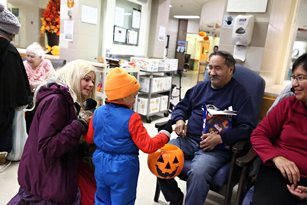 Residents at the William A George Extended Care Unit handed out candy to the many children who visited them on Halloween evening, putting a smile on the faces of residents and visitors alike.