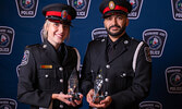Cst. Couce and Cst. Soliman received the prestigious life-saving award for their efforts during a Jan. 15, 2023, incident in Kashechwan First Nation. The two officers responded to a call for service after receiving vague reports about someone bleeding.