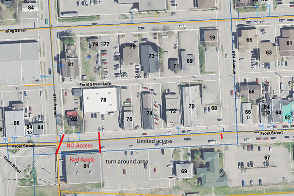 Front Street was blocked between Fifth and Sixth Avenues that evening, with limited access to Front Street from Fifth Avenue to the Municipal Parking Lot beside the Red Apple store being restored the following morning. The Municipality of Sioux Lookout informed that the Municipal Parking Lot will serve as a “turnaround area” for vehicular traffic.
