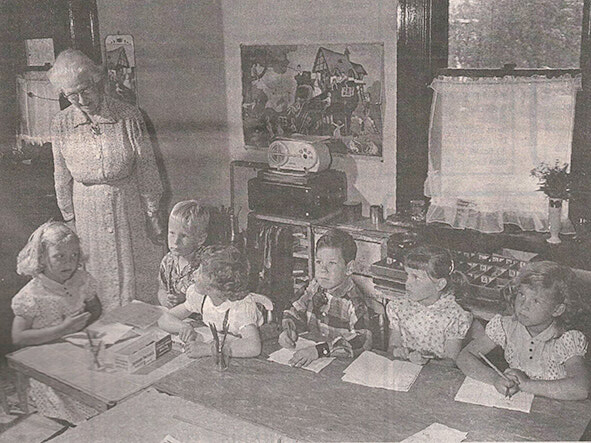 Photo with the caption, “Students listen as Miss Boyle talks.” Date unknown.