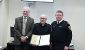 Pictured: Sioux Lookout Mayor Doug Lawrance (left) and OFM Fire Protection Advisor Larry Lundy (right) congratulate Favot (centre).