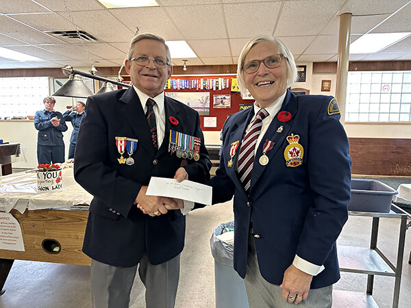 Beef on a bun was served following the service by members of the Legion Ladies Auxiliary, who also presented the Legion with a cheque for $7500 to support the upkeep and maintenance of the building.