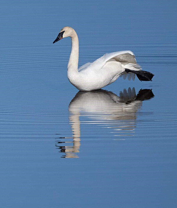 This Trumpeter Swan was spotted doing some stretches near the Frog Rapids Bridge last week. Many species of waterfowl have been returning as the ice slowly recedes from area lakes and rivers.