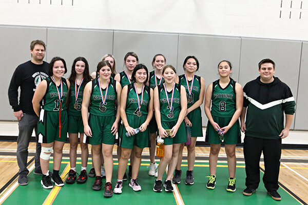 The SNHS Warriors junior girls basketball team defeated the Dryden High School Eagles 33-25 in the semi-final to advance to the final against the Fort Frances High School Muskies, where they fell to the Muskies 36-18 to earn silver medals.